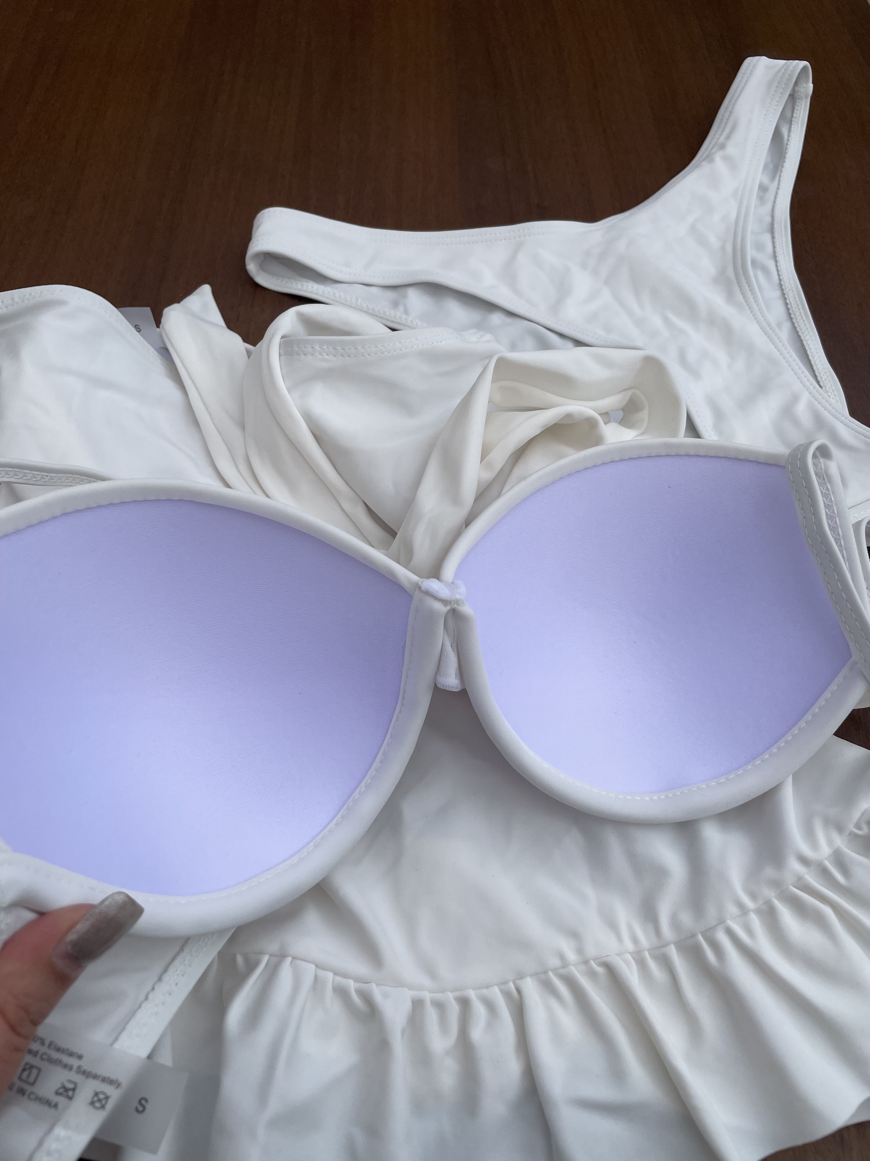ست بیکینی سفید شیک با کاور چین دار برند SHEIN.با این ست بیکینی سفید استایل ساحلی تون رو به سطح بعدی ببرید! این سا شامل یه بالاتنه کاپ دار با بندهای قابل تنظیمه که فیت عالی روی بدن ایجاد میکنه به همراه یه شرا مینیمال که جذابیتش رو دوچندان میکنه.کاور چین دار این ست هم با پارچه ی سبک و لطیفش، یه انتخاب ایده آل برای پوشش کنار ساحلیا استخر محسوب میشه .مناسب برای تعطیلات تابستونی،سفرهای ساحلی و لحظات خاص کنار آب.با SHEIN همیشه شیک و بروز باشید!