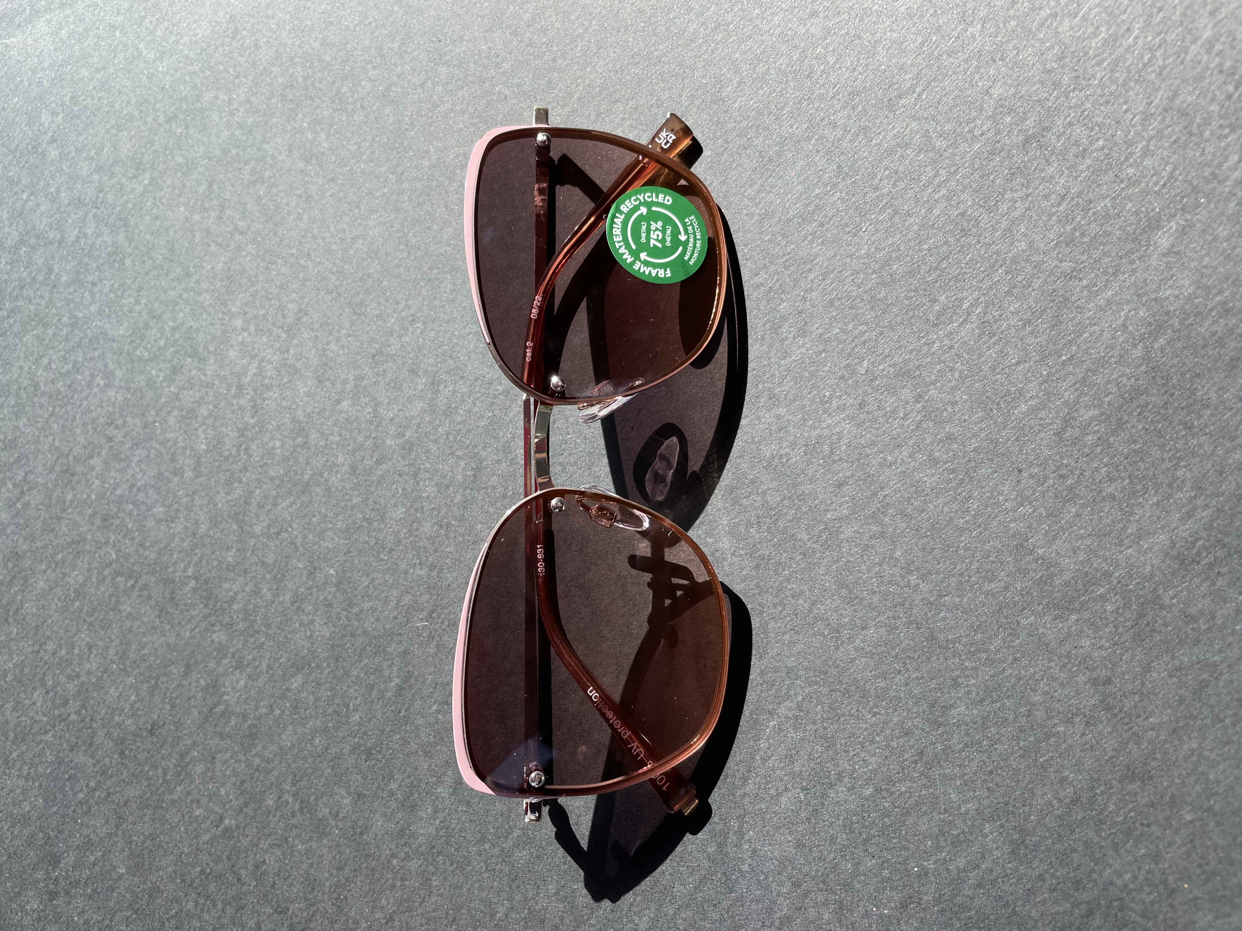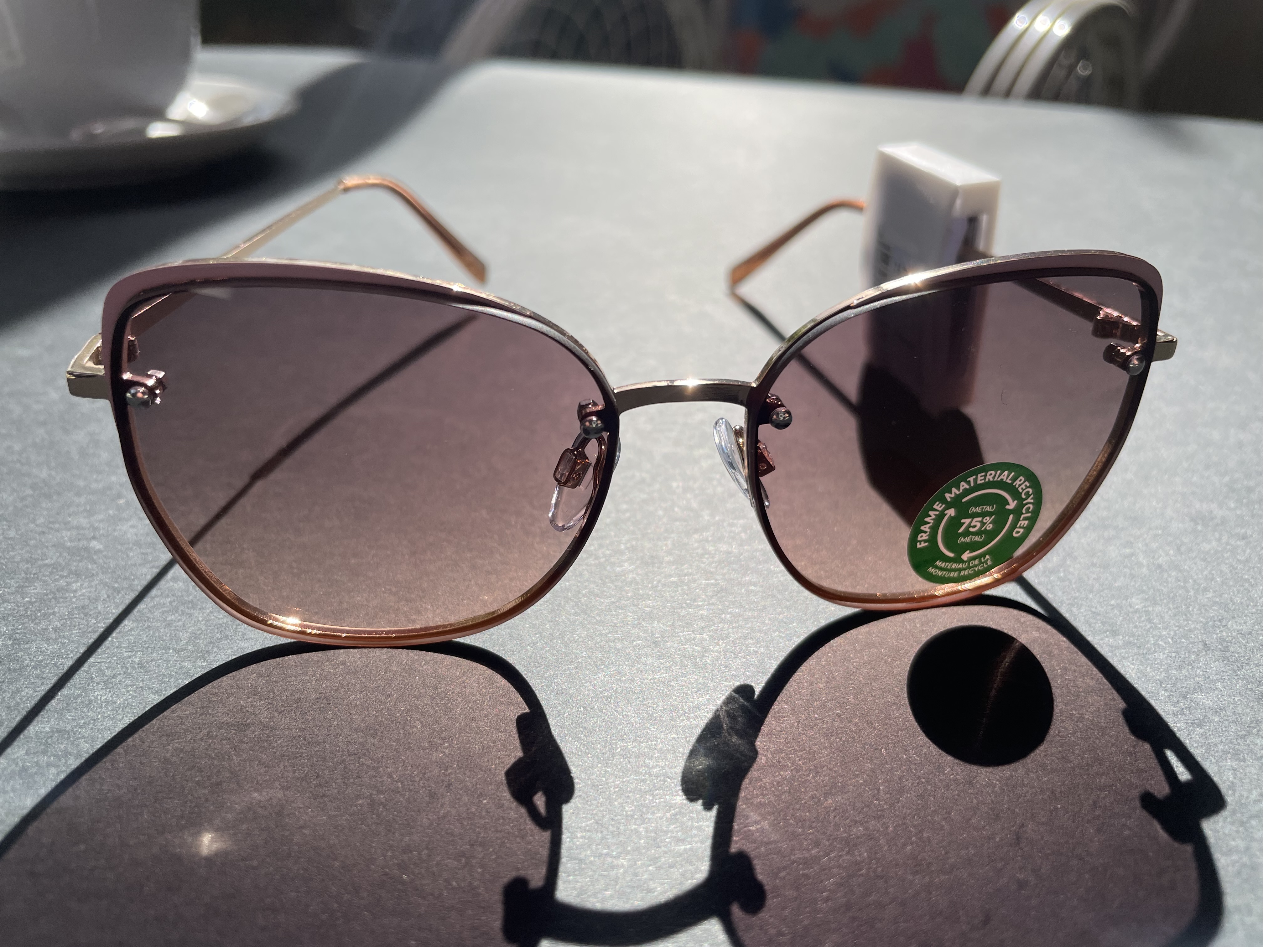 عینک برندaccessories آلمان . عینکی با فریم فازی برنز و لنزهای قهوه ای تیره ، دارای محافظت UV100%. طراحی شیک و سبک، مناسب استایل های روزمره و خاص .