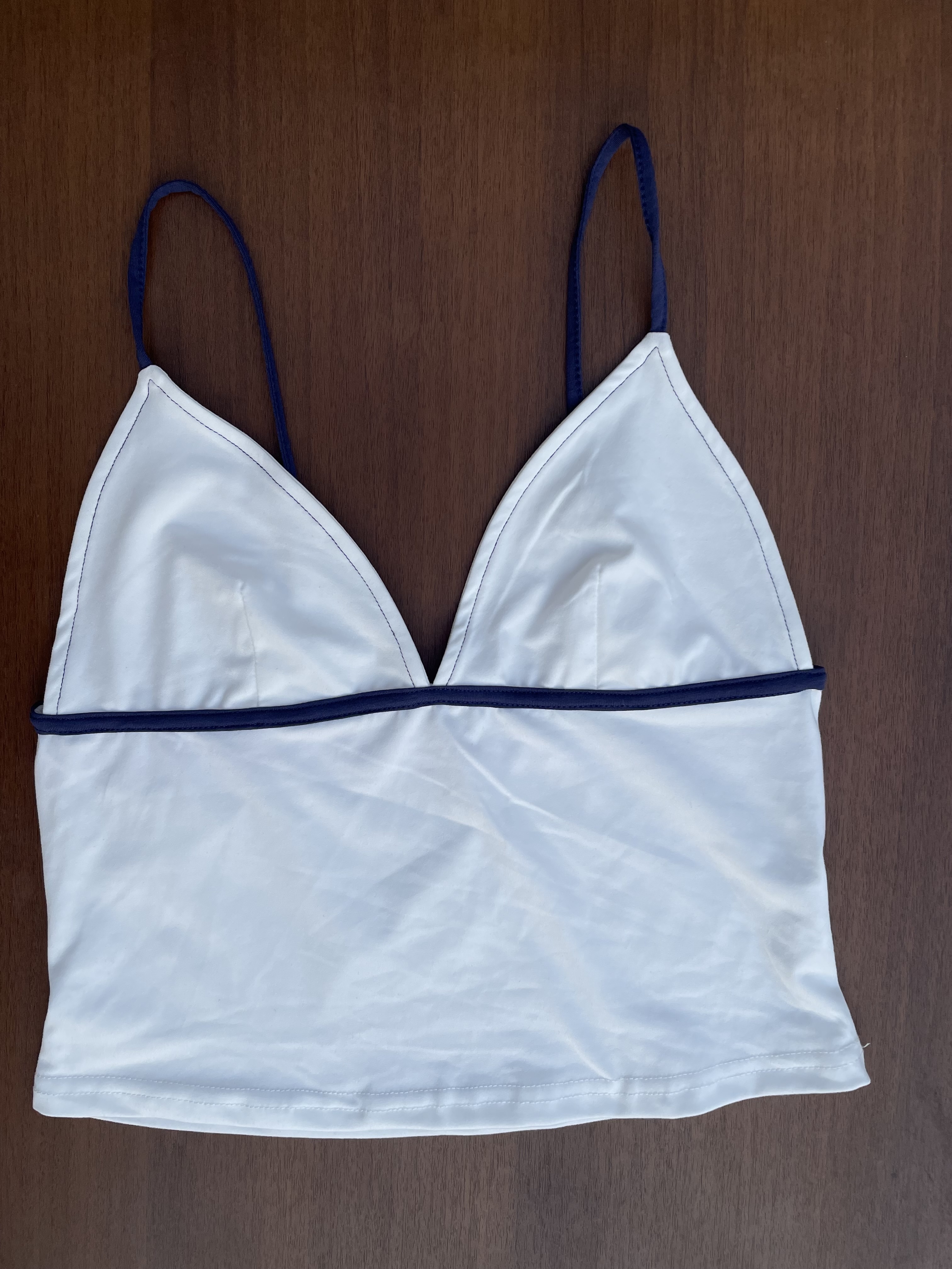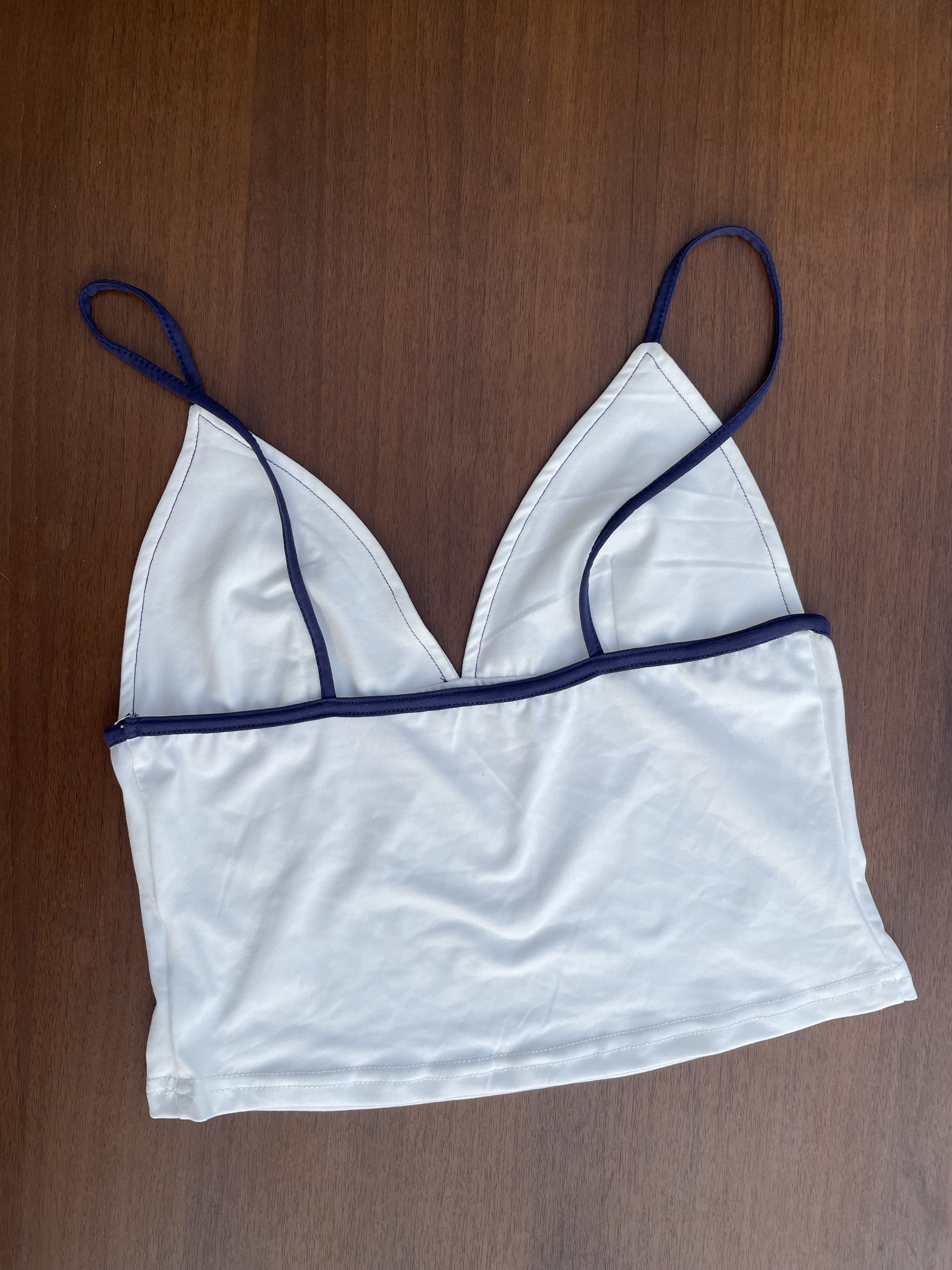تایپ کراپ بندی سفید برند SHEIN بند آبی ، سایز s