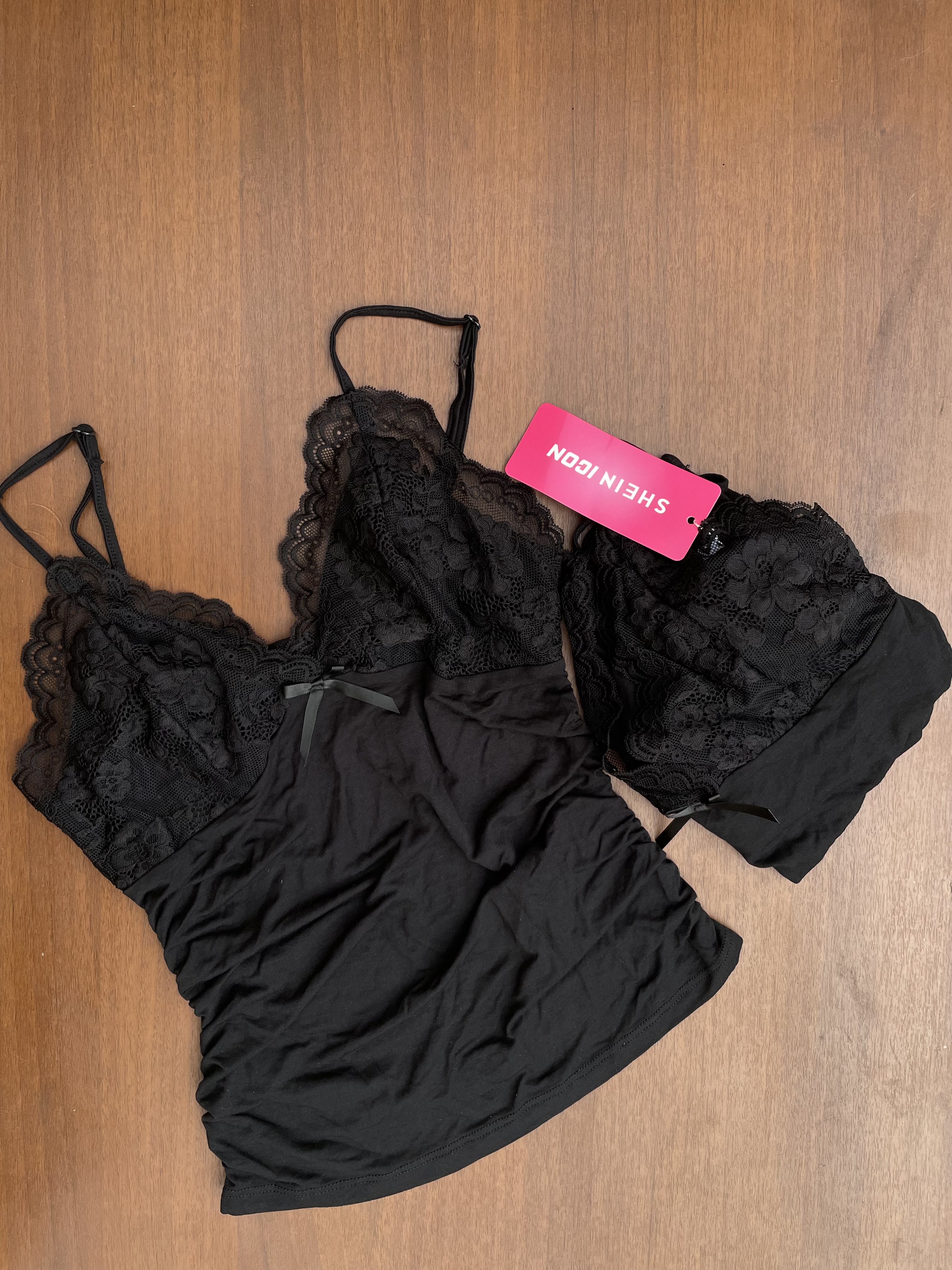 تاپ بندی جلو دانتل ، بند قابل تنظیم/ سایز L مناسب ۴۰/۴۲ و سایز s مناسب ۳۸