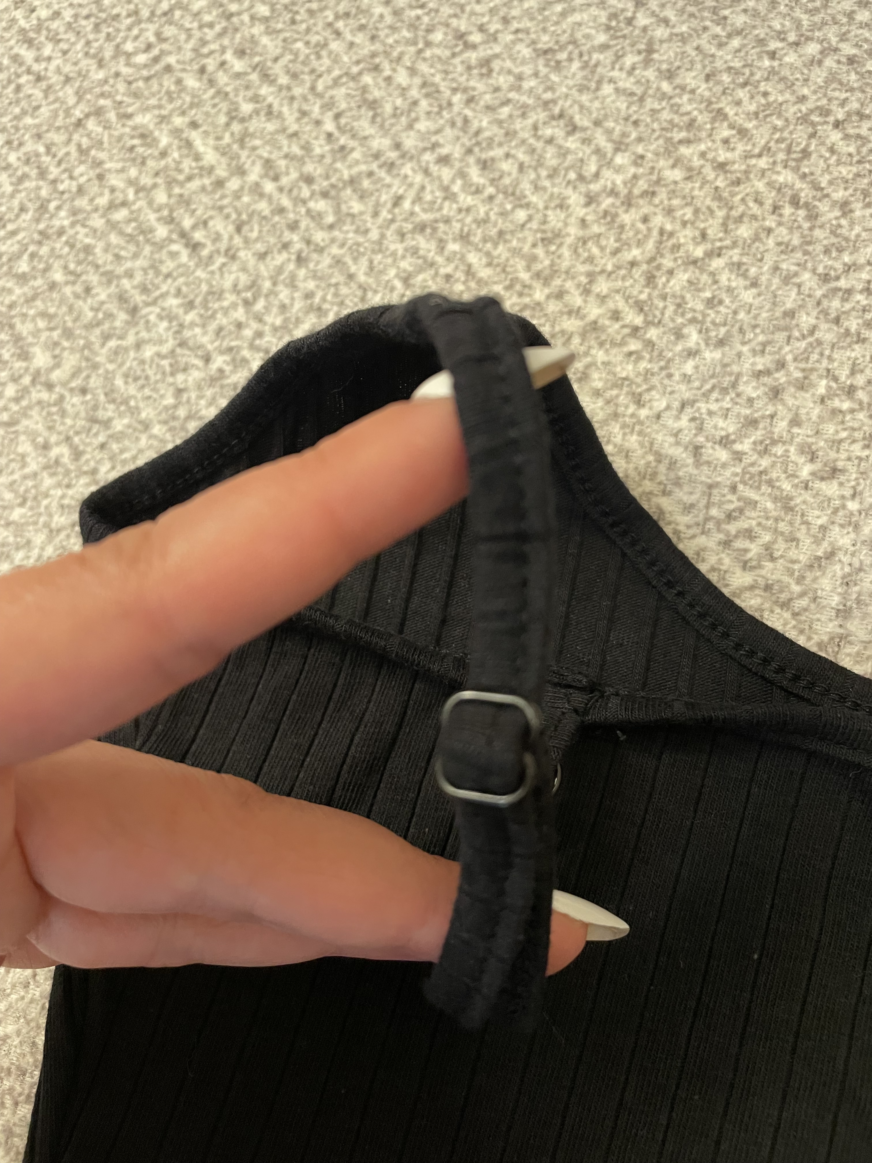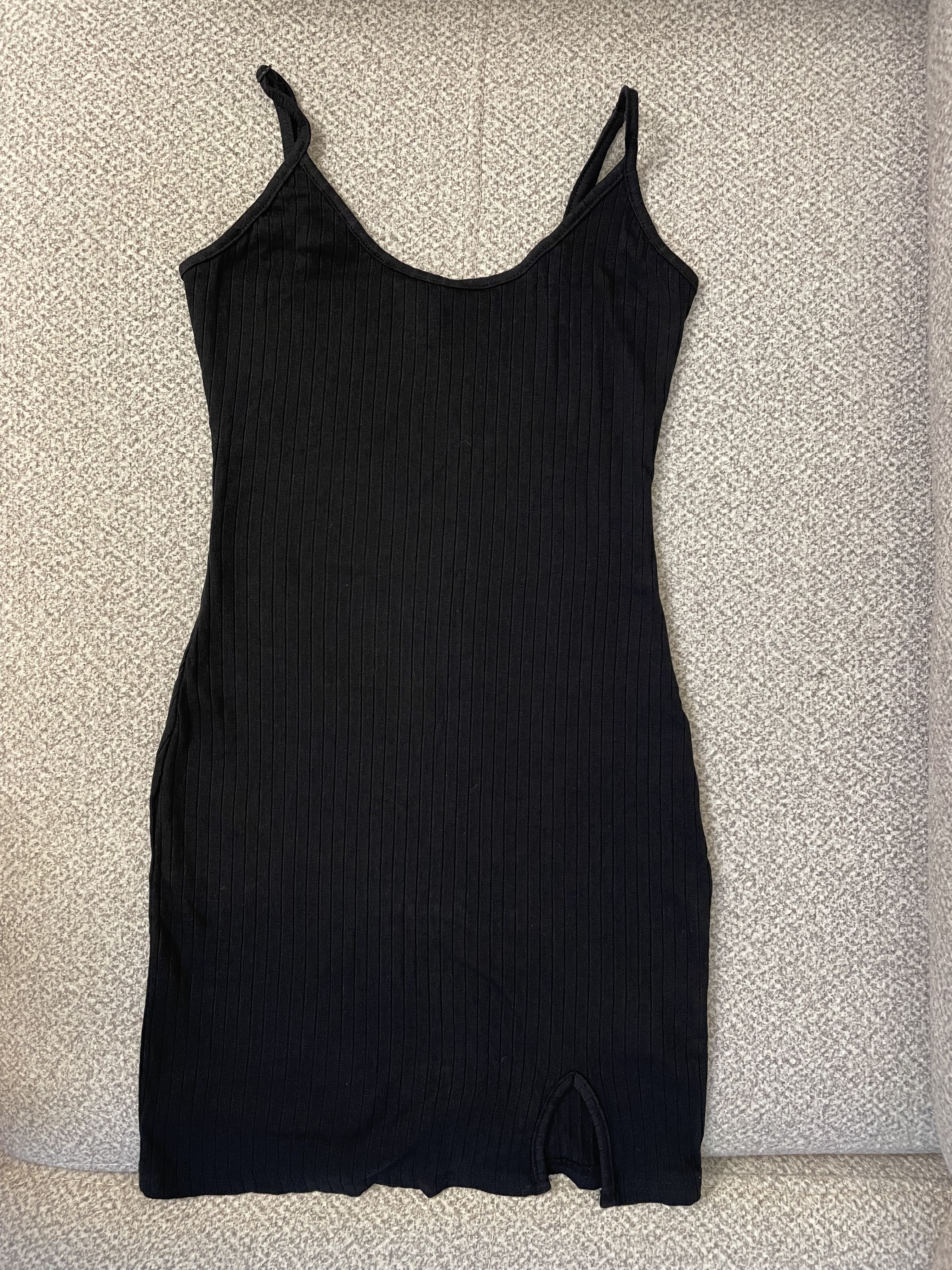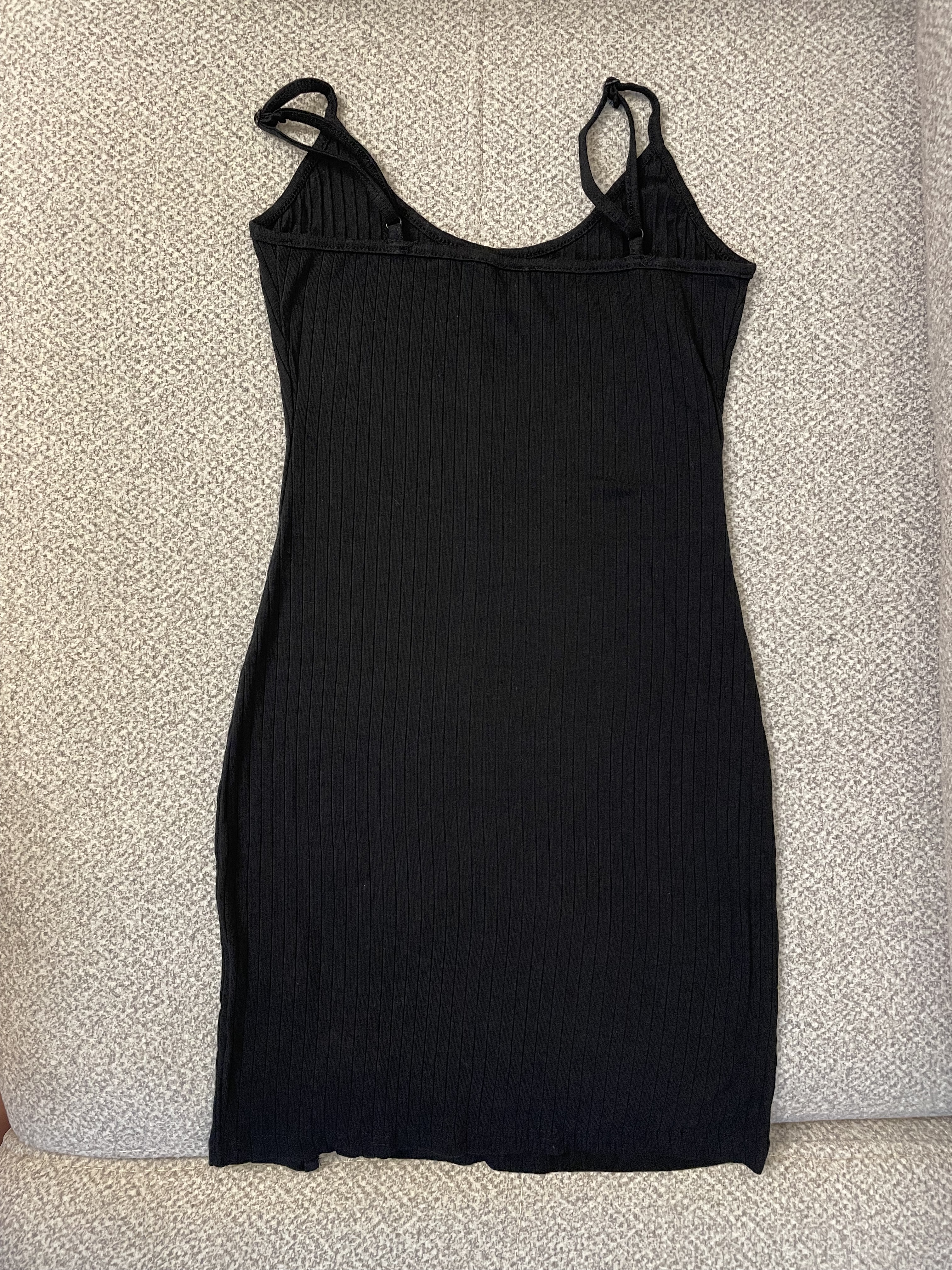 پیراهن مشکی برند shein چاک کوچک جلو ران و بندهای قابل تنظیم تنخور عالی. مناسب مهمانی ها و روزمره.
