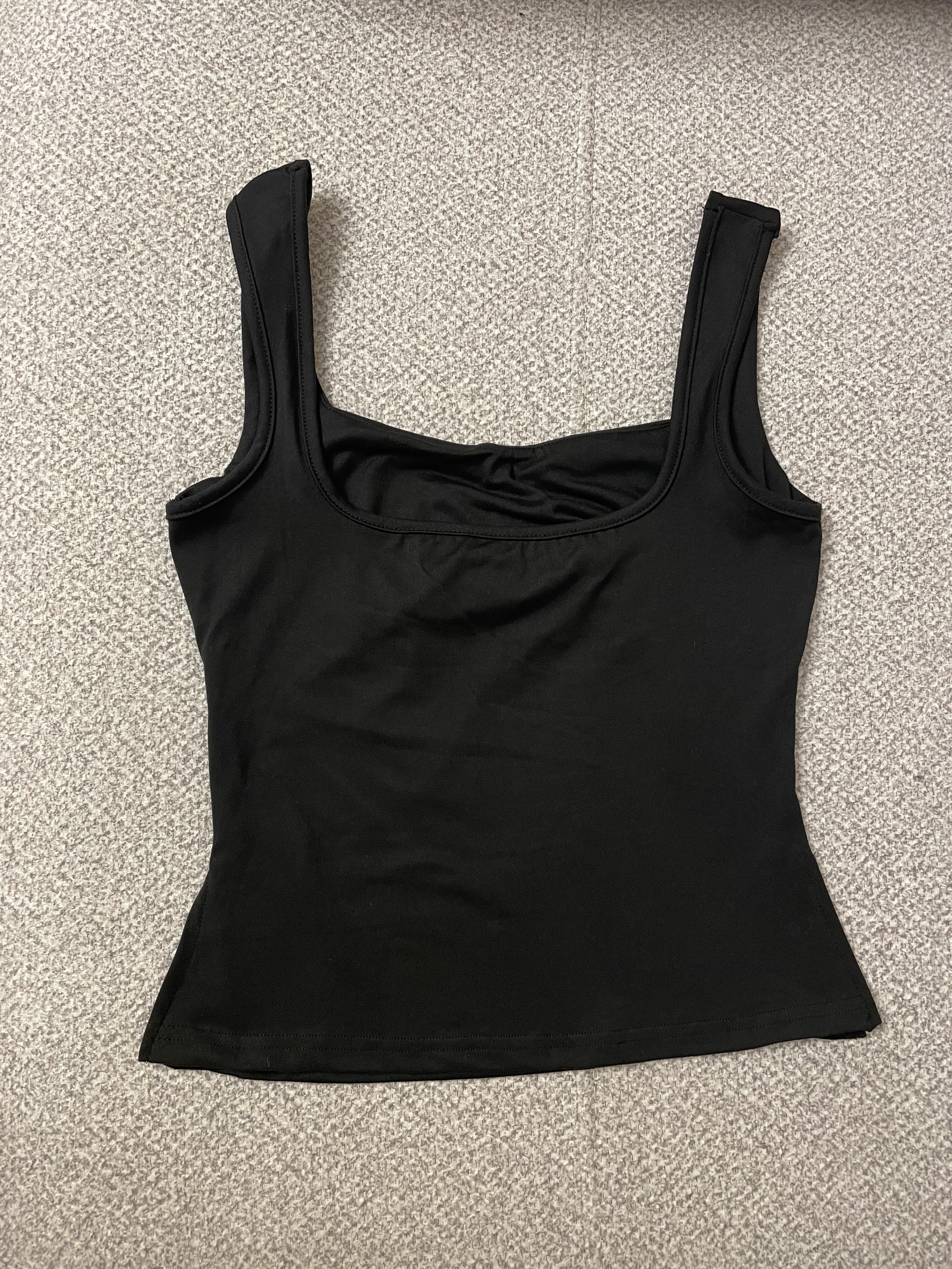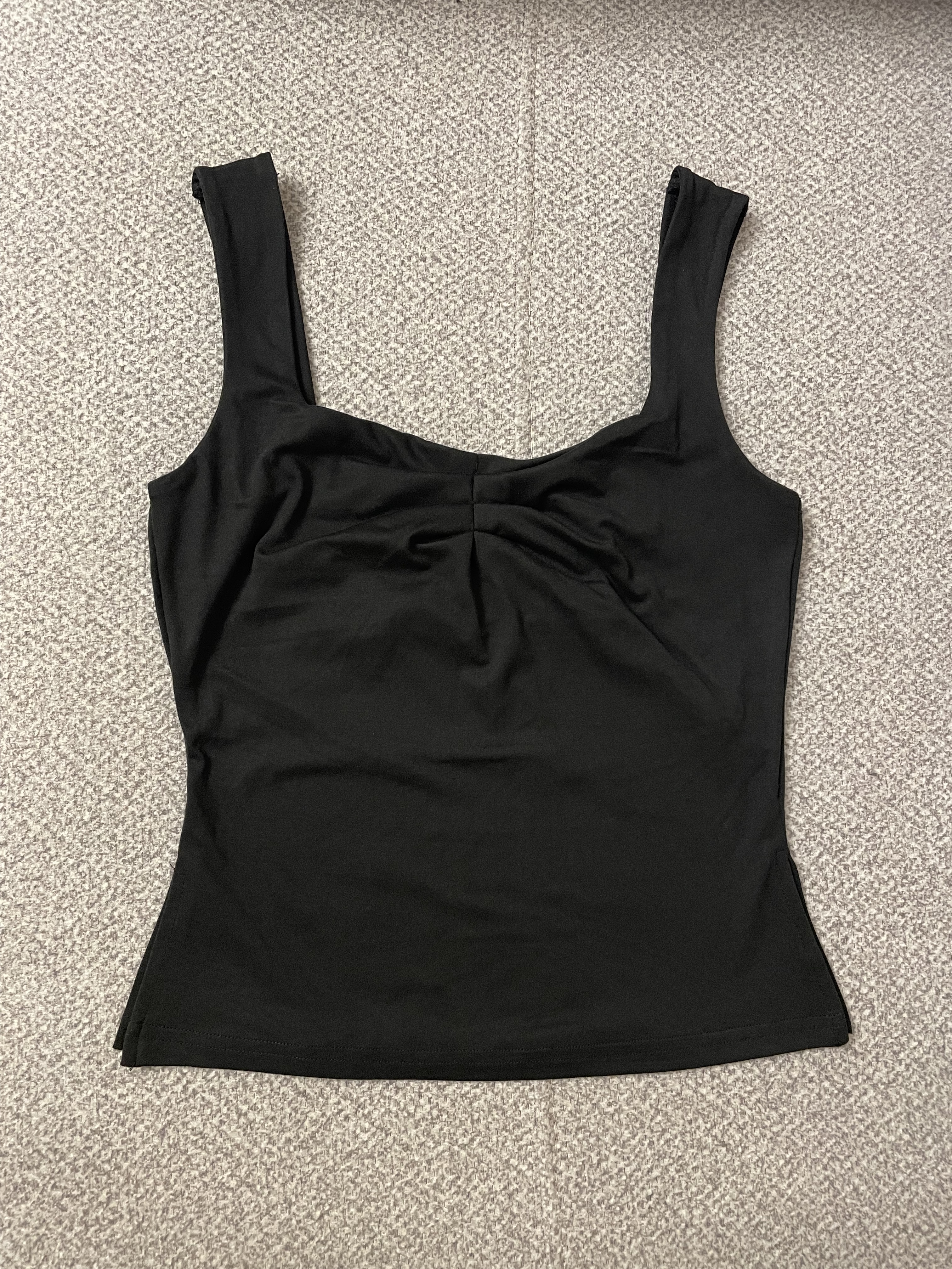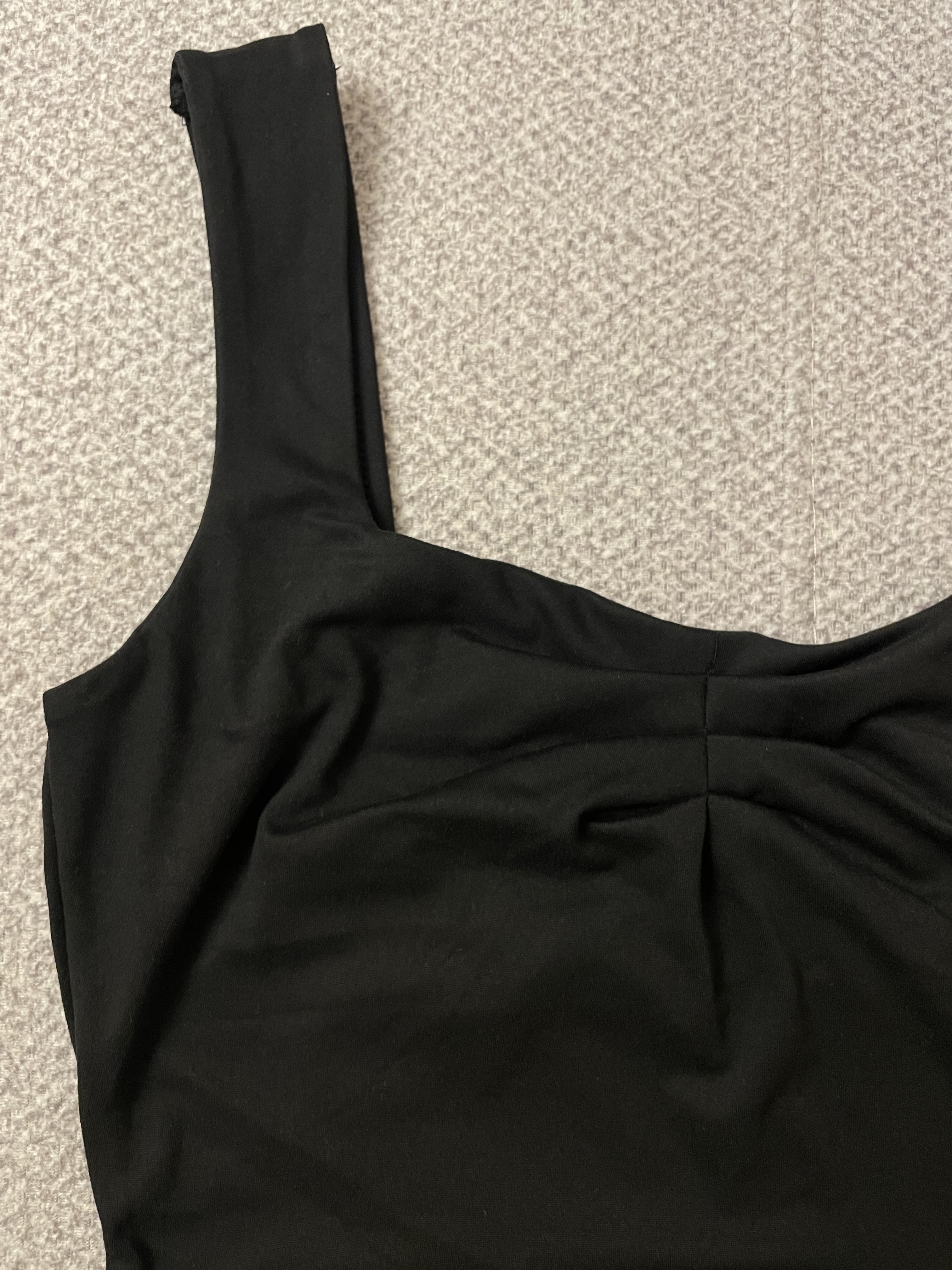 این تاپ مشکی با طراحی بدون آستین و یقه مربعی ، طاهری جذاب و امروزی به شما میدهد. پارچه نرم و انعطاف پذیر آن با ترکیب الاستین راحتی و تناسب عالی را تضمین میکند . طراحی جمع شده در قسمت سینه استایل شما را خاص تر میکند و مناسب استفاده با شلوار جین یا دامن است .