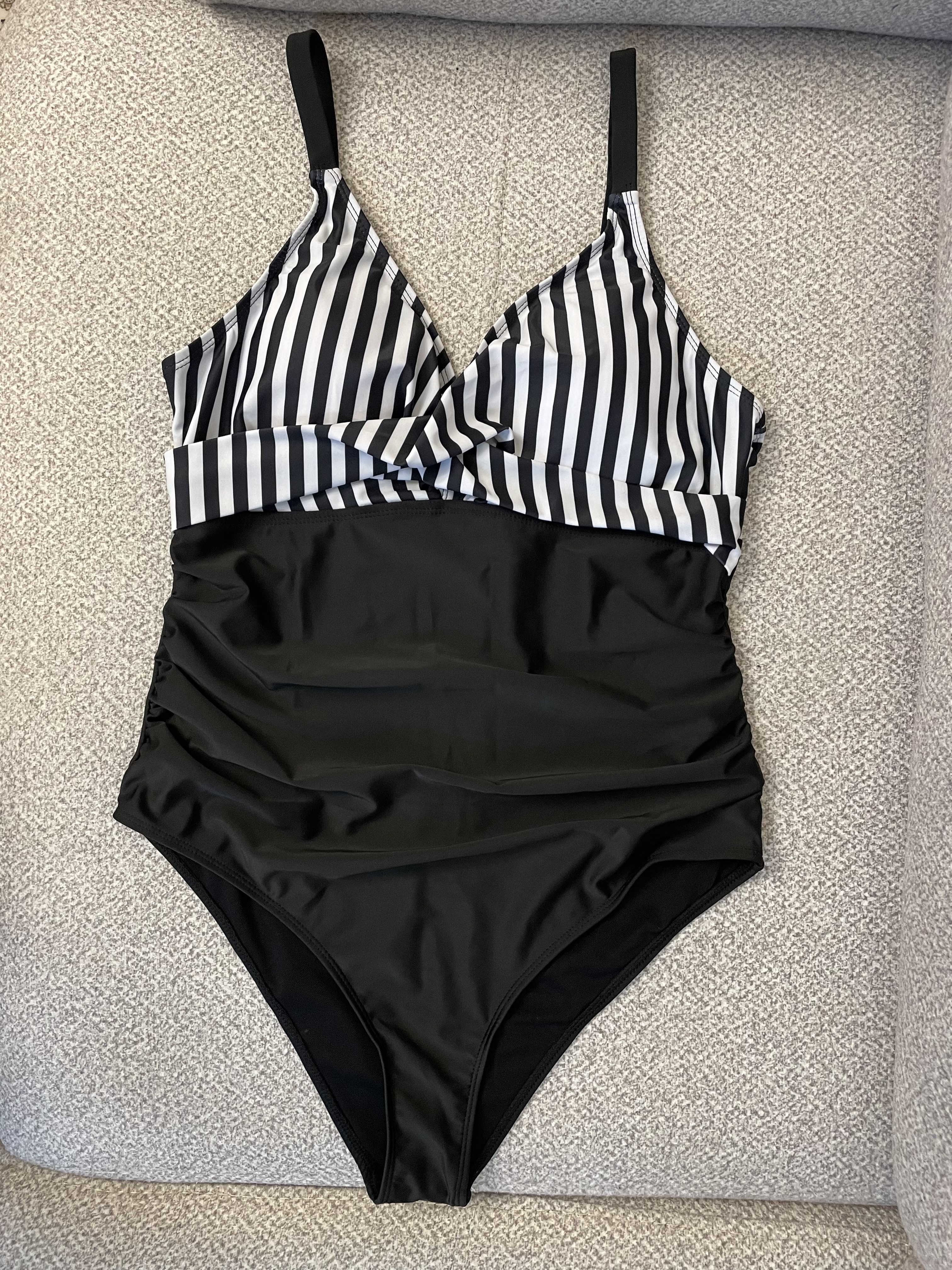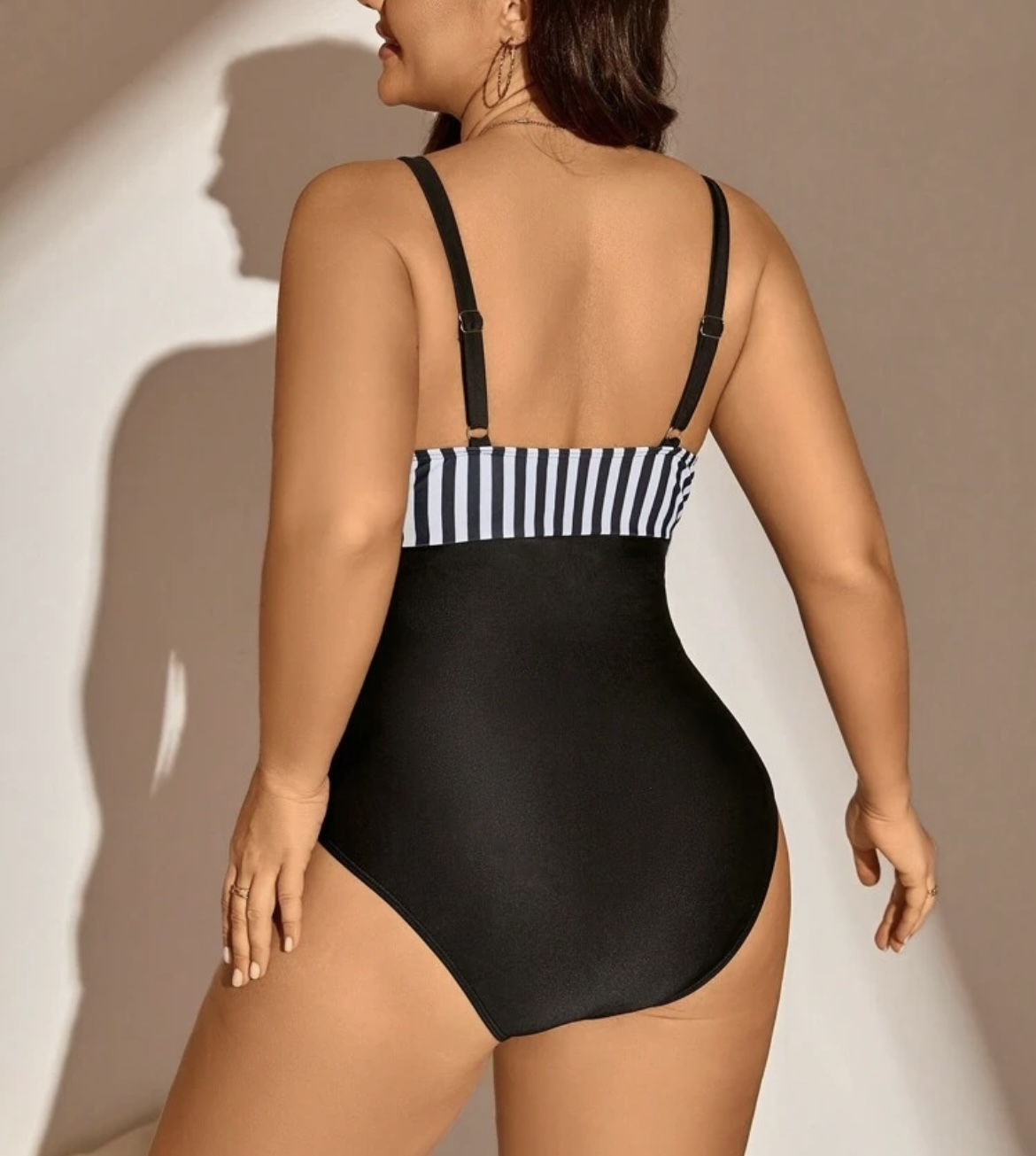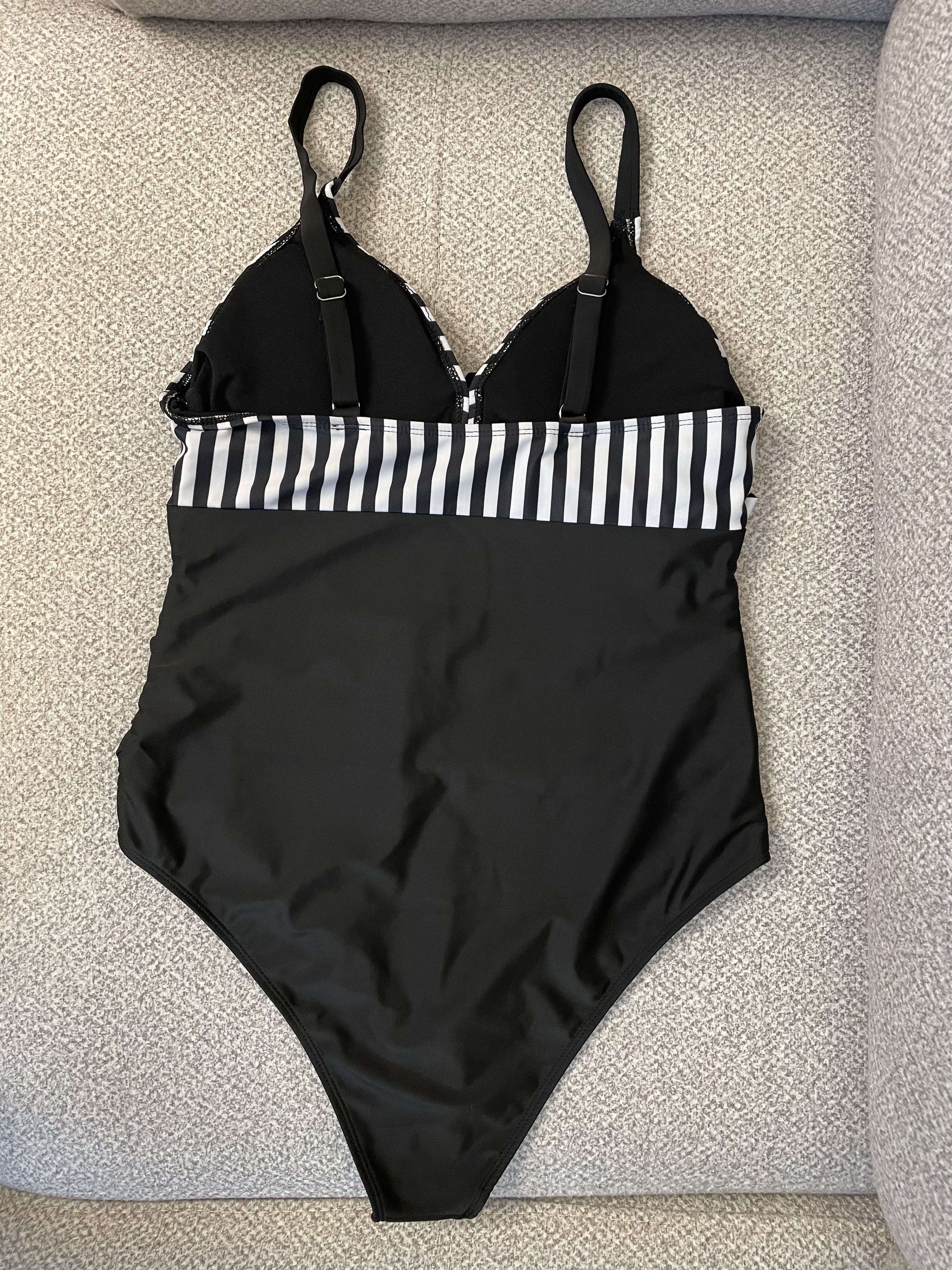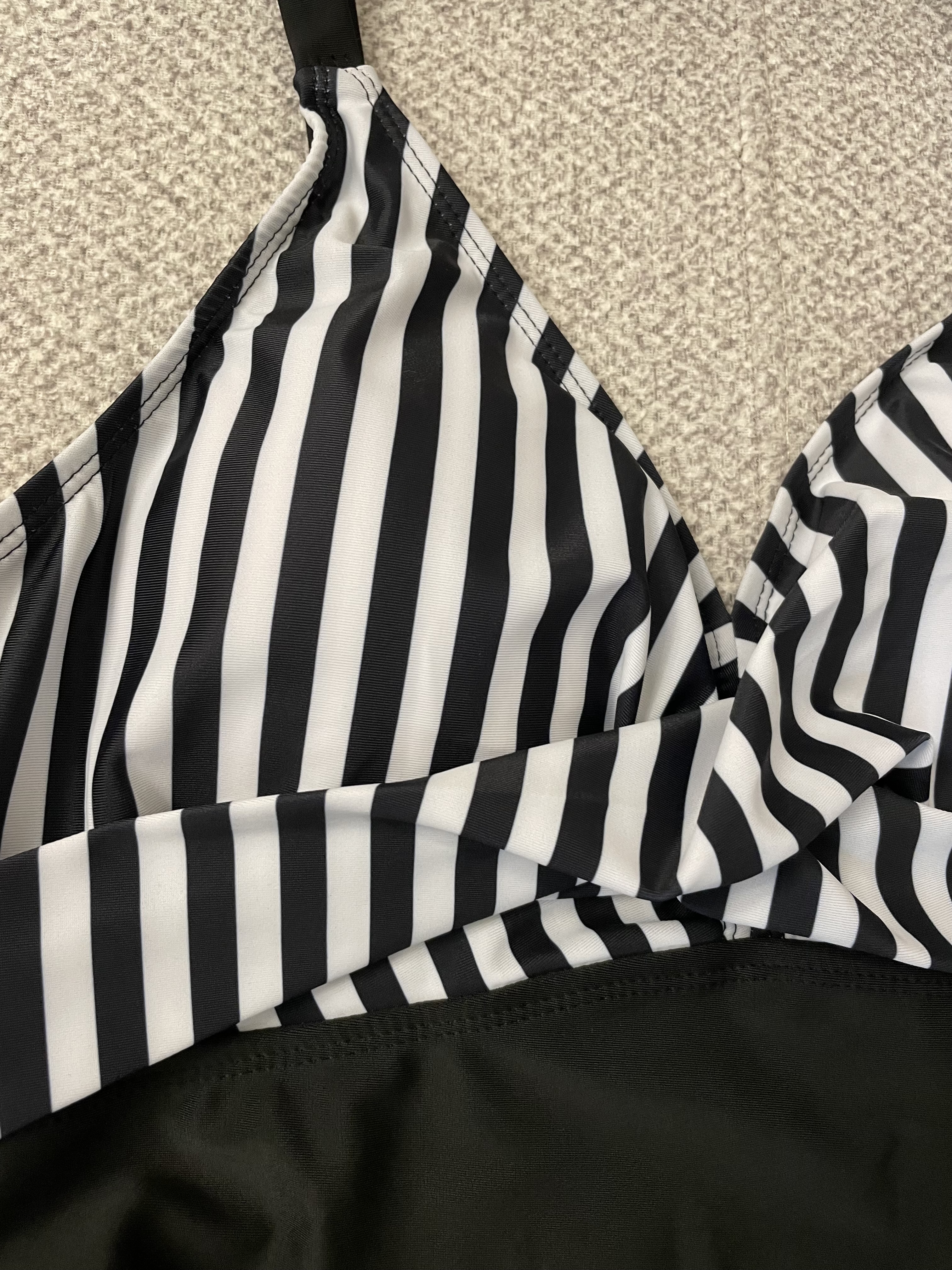 مایو زنانه یه تکه راه راه مشکی و سفید برندSHEIN کد212