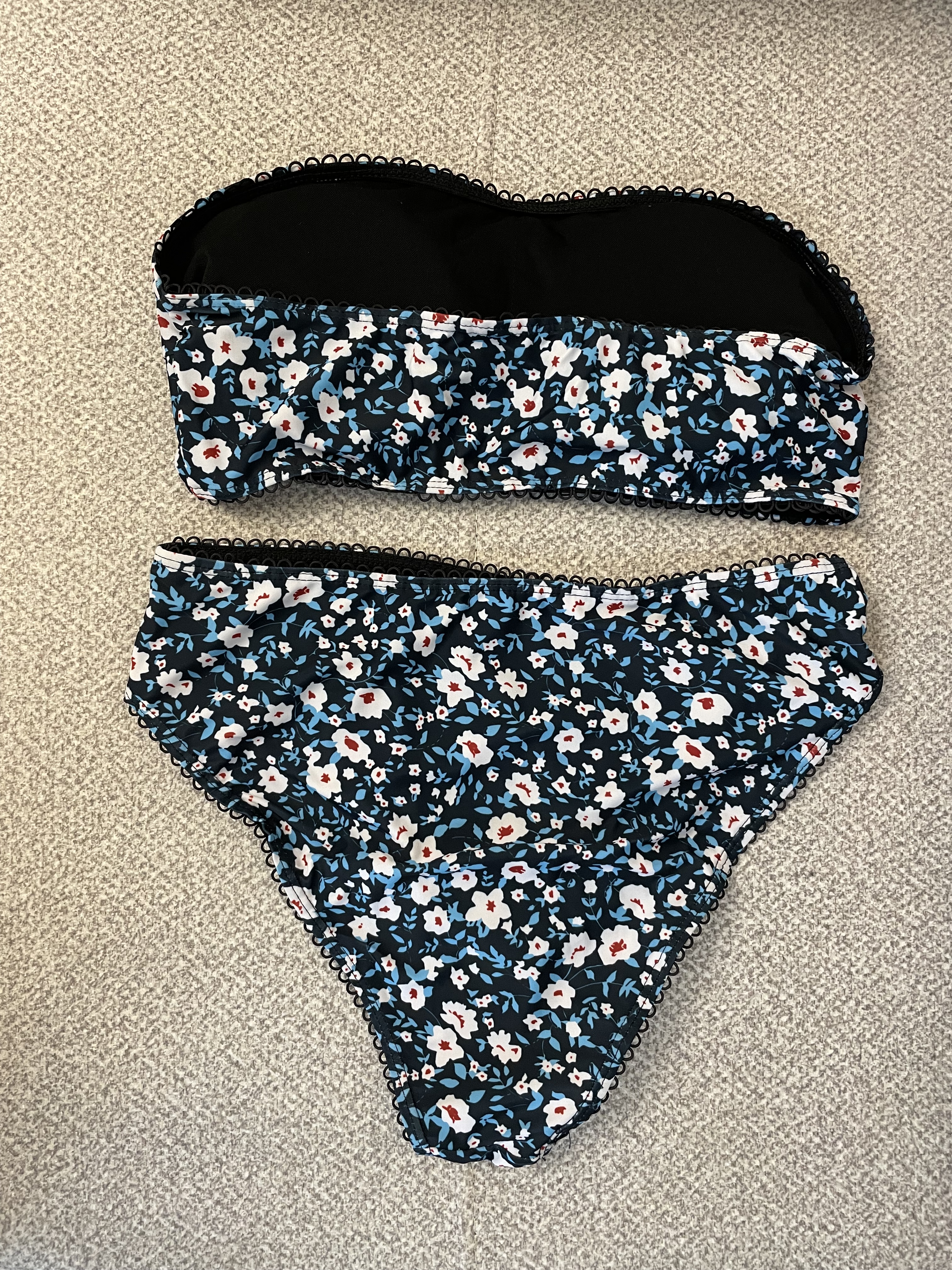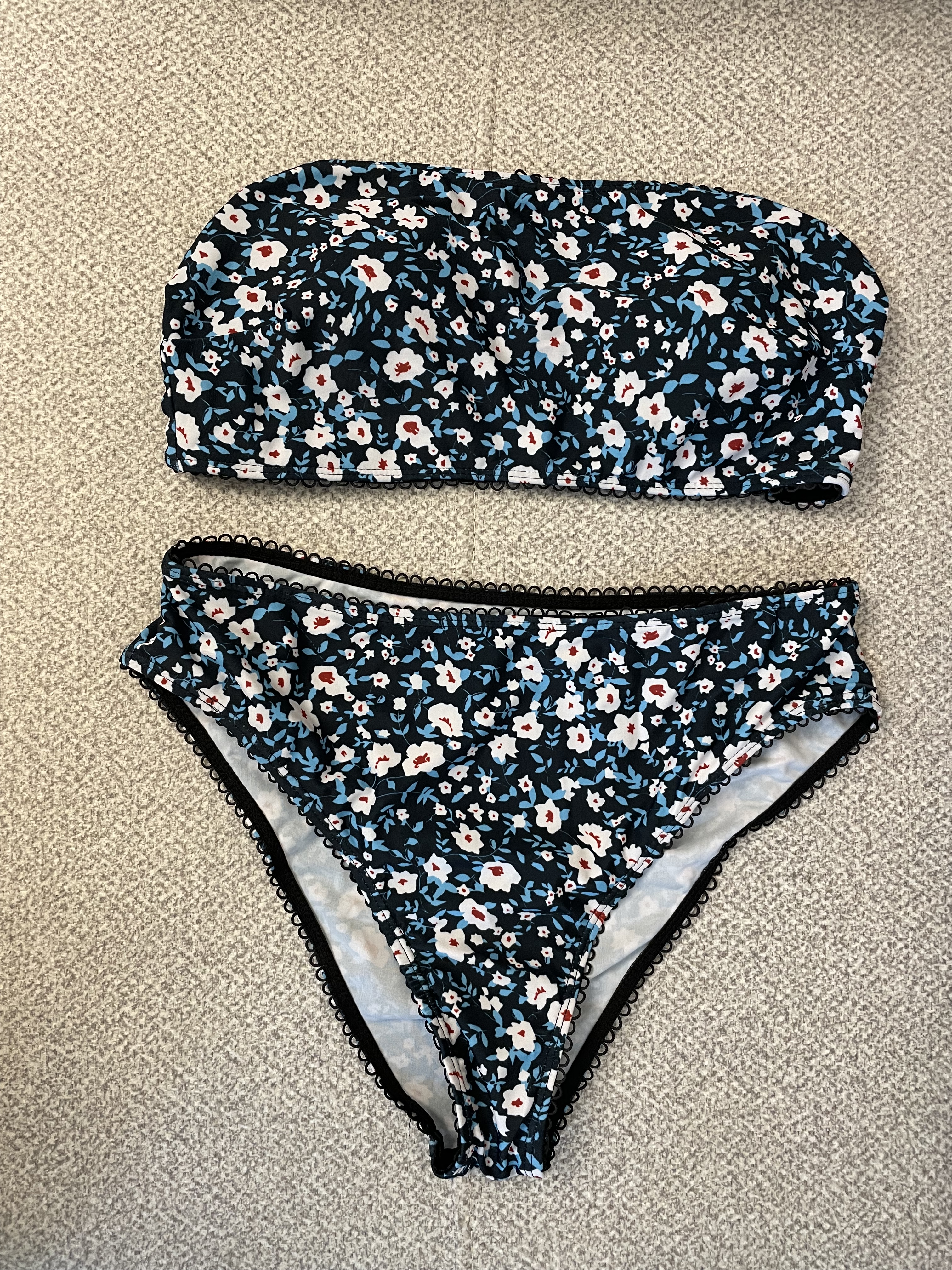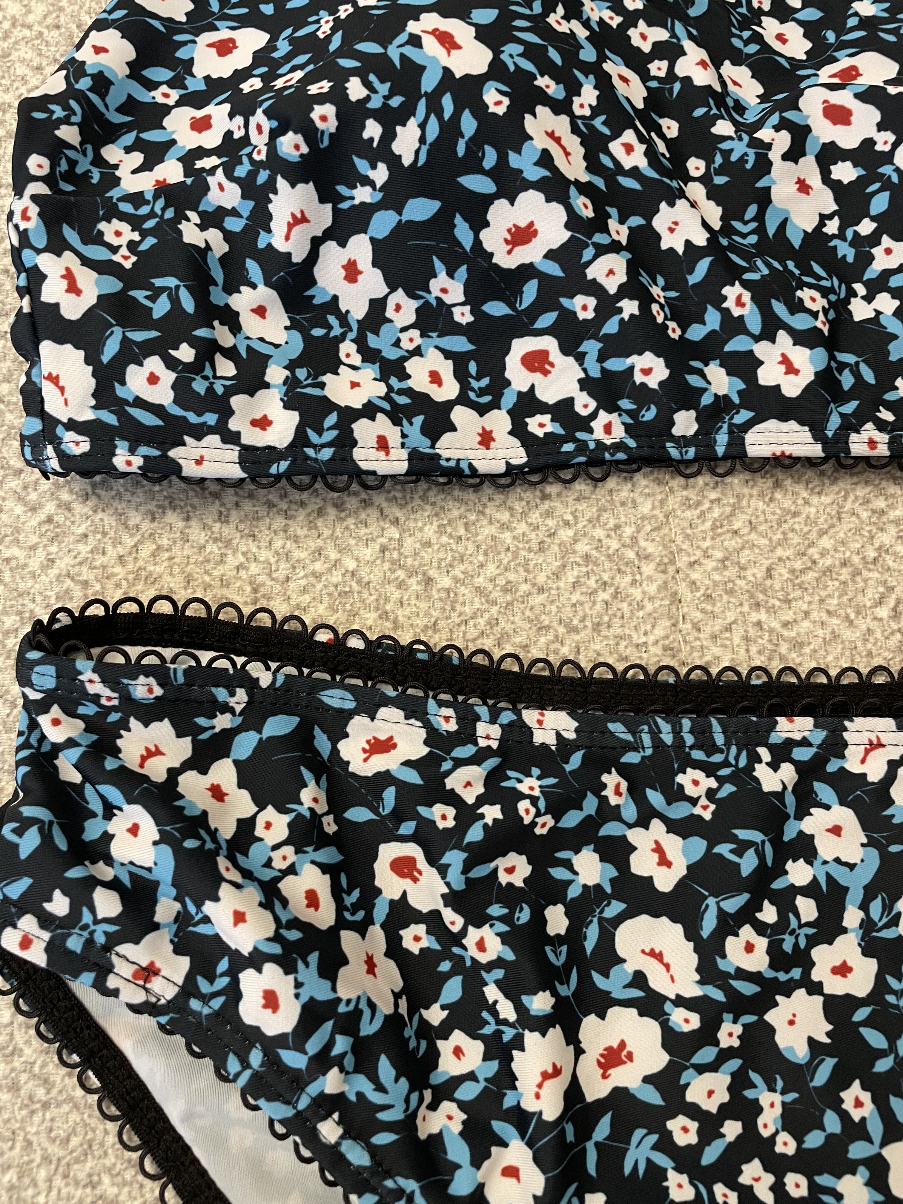 به استقبال تابستان بروید با این ست مایوی شیک و خوش دوخت! این ست شامل یک بالاتنه دکلته و یک شورت فاق بلند است که با طرح گل های سفید و آبی بر زمینه ای مشکی، ظاهری زنانه وو لطیف و جذاب به شما می بخشد.