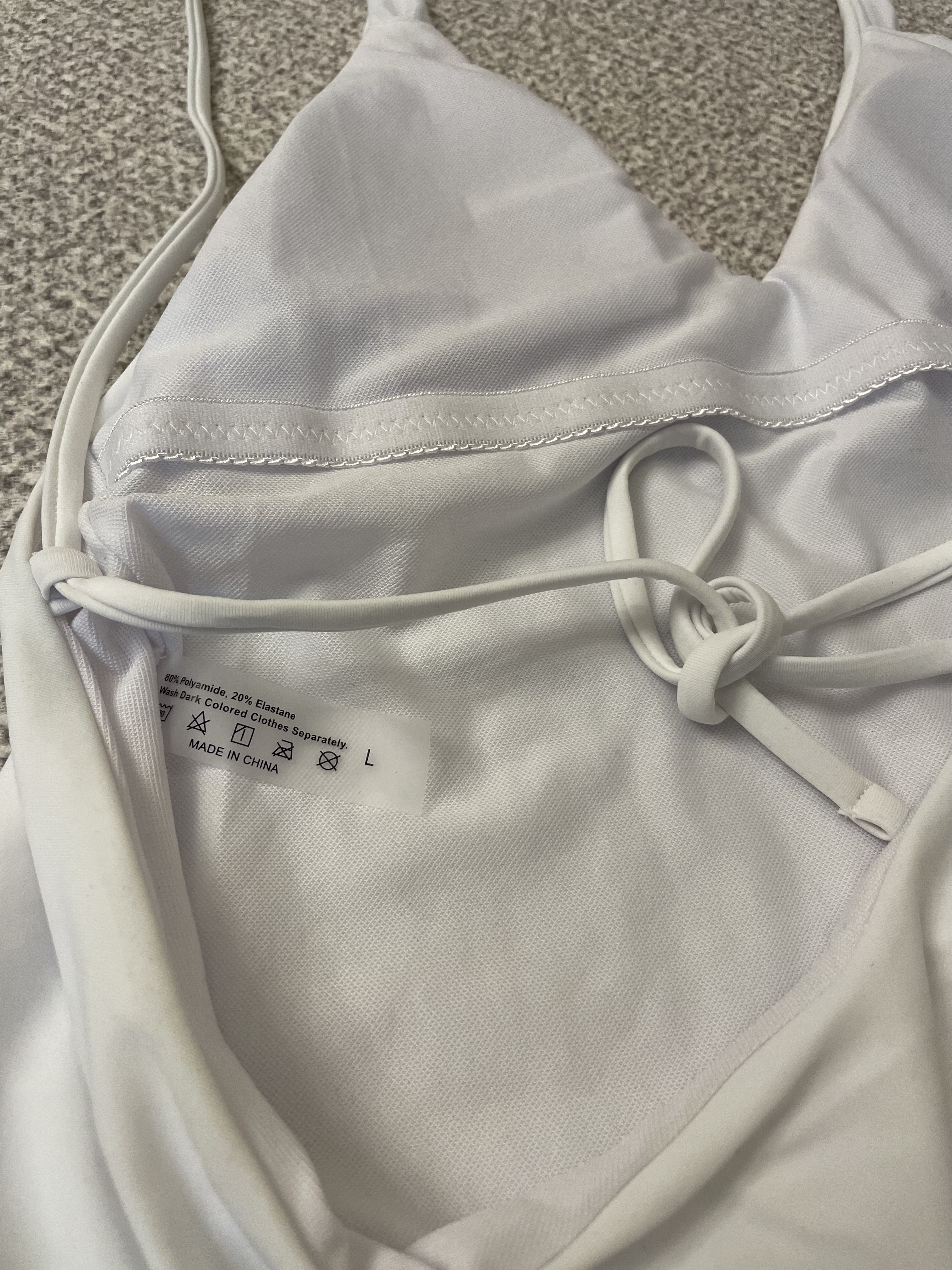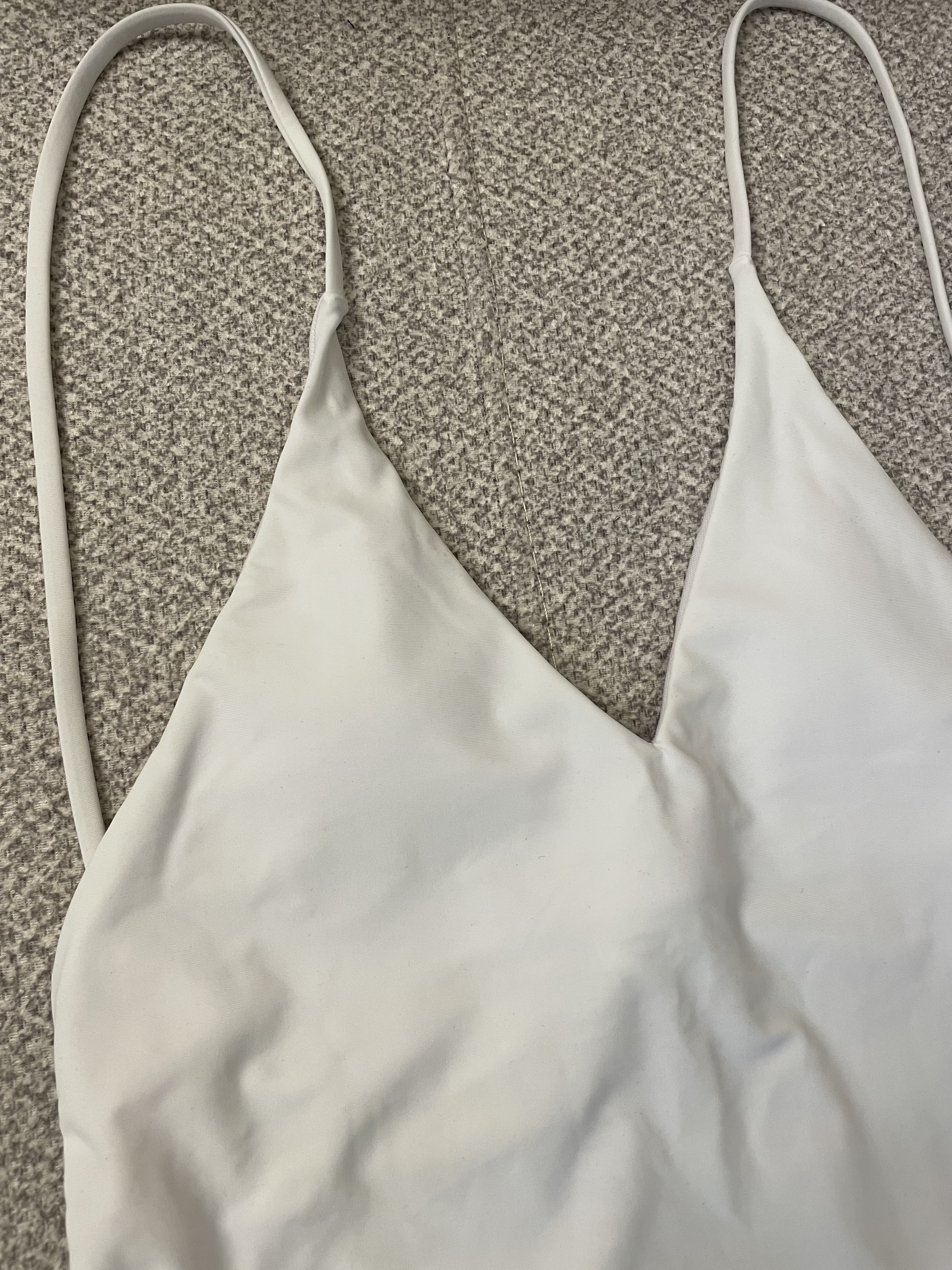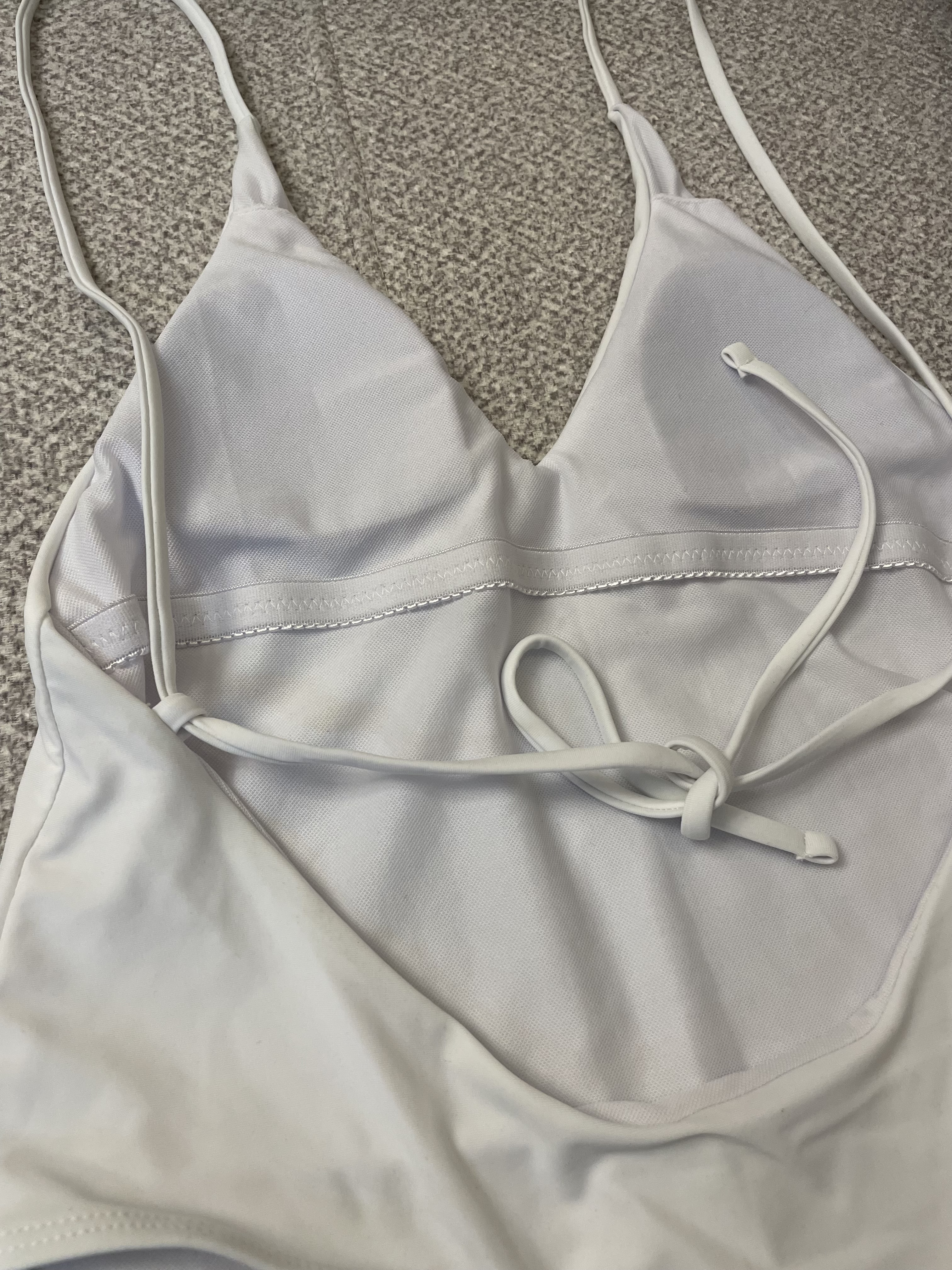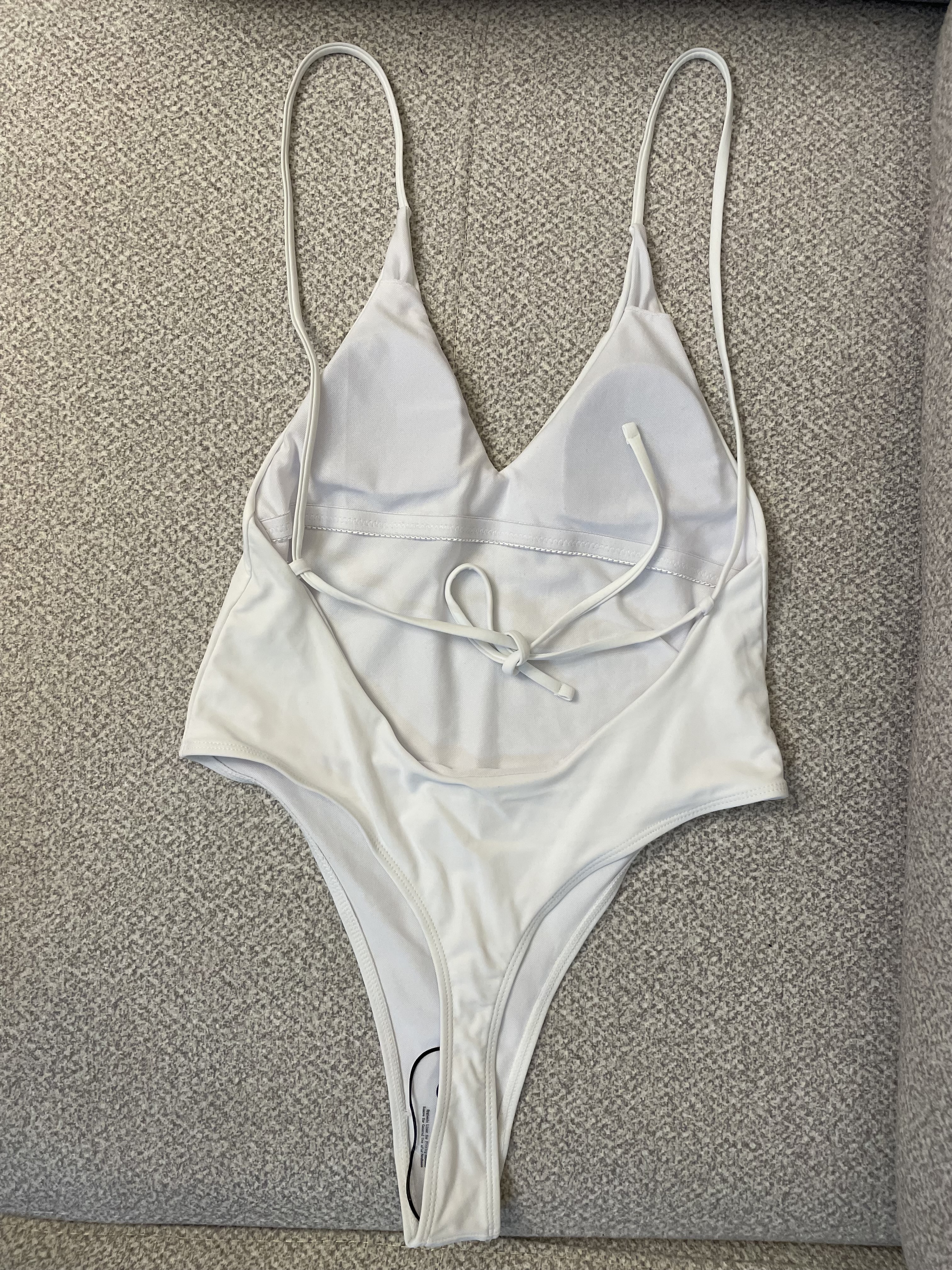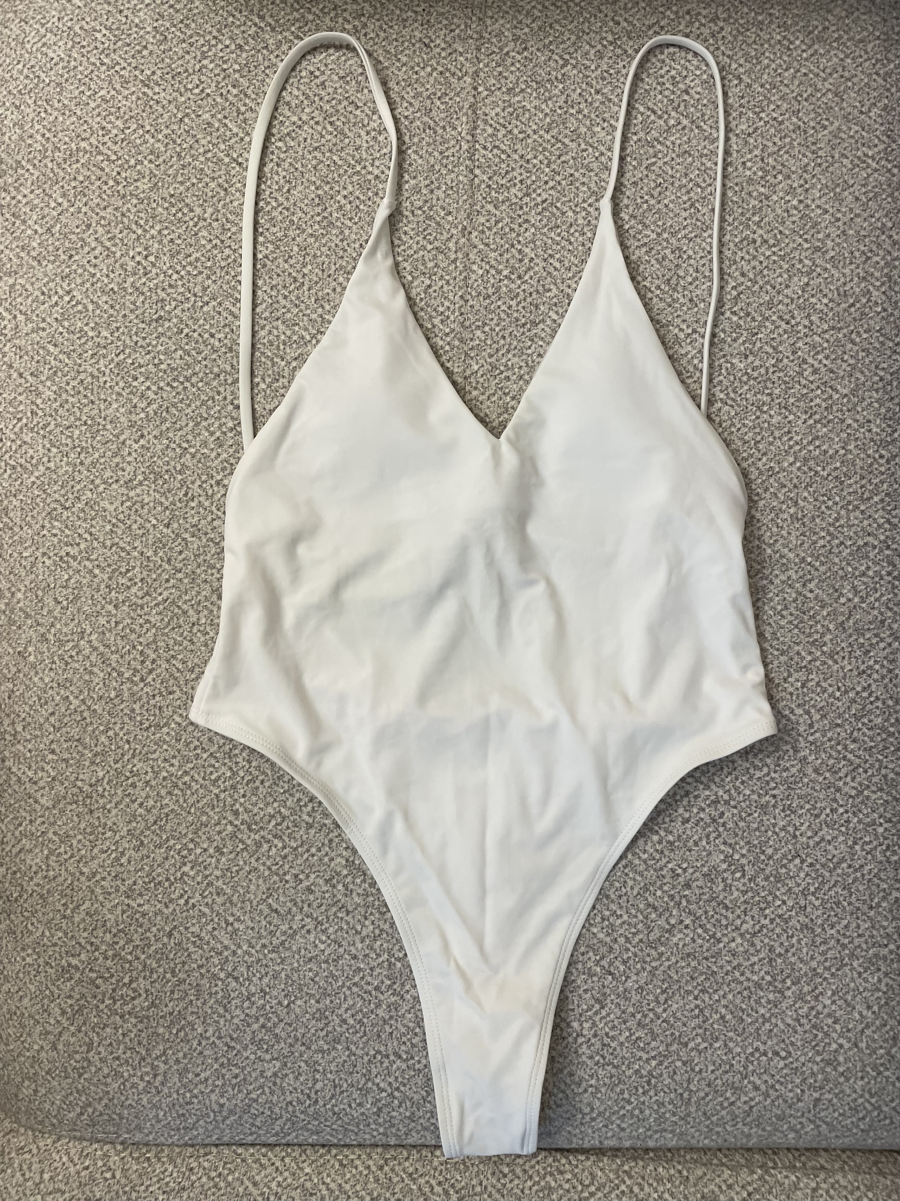 این مایو زنانه یک تکه با طراحی مینیمال و شیک ، انتخابی عالی برای استایل ساحلی یا استخر است. با یقه V و بندهای نازک، جلوه ای زنانه وظریف به بدن می دهد. پشت آن دارای بندهای قابل تنظیم است که به راحتی روی بدن فیت می شود.